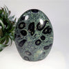 A freeform crystal is cut, polished, and shaped according to the natural flow of a crystal's structure and formation. These are often a type of dome shape, undulating tower, or even flame shape that is beautiful by any standard.