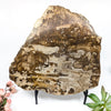 A crystal slab is a piece of crystal cut into a flat shape, often with natural, unpolished edges. The flat shape makes it easy to display upright on a stand or lay flat on the body. Slabs can show off a crystal's pattern and colors sometimes better than a freeform or tumbled stone as there is more smooth, contiguous surface to look at.