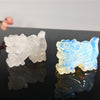 Aura is a beautiful stone made by bonding natural crystals and precious metals such as platinum, silver gold, or titanium in an oven-like vacuum chamber that creates the perfect balance between heat and pressure to permanently bond all ingredients together so they'll never come apart again! This crystal allows healing and also helps others because of its positive energy level while enhancing communication skills when used during meditation sessions or psychic protection strategies against negativity.