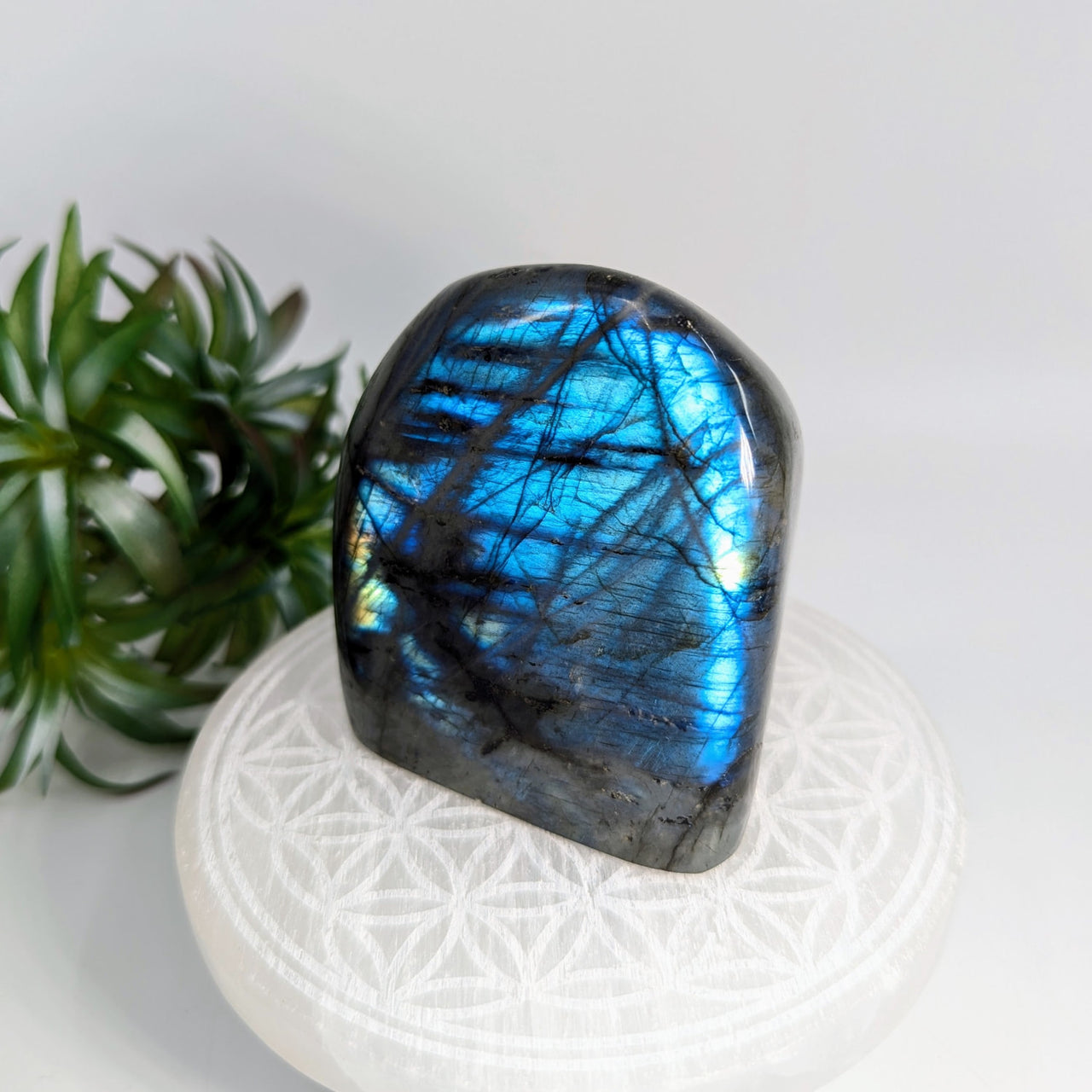 Labradorite is known as one of the most powerful mystical, protective crystals for those in the healing, psychic arts, spiritual and artistic fields. It is truly magical as a dreaming crystal and a portal to creative genius. It brings flashes of insight and wisdom, raising consciousness, and guiding transformation. It holds many healing uses for the physical body. and may help mental clarity, remove creative blocks and relieve despondency & sadness. Labradorite makes stunning jewelry and can be worn daily as protection against negative forces.